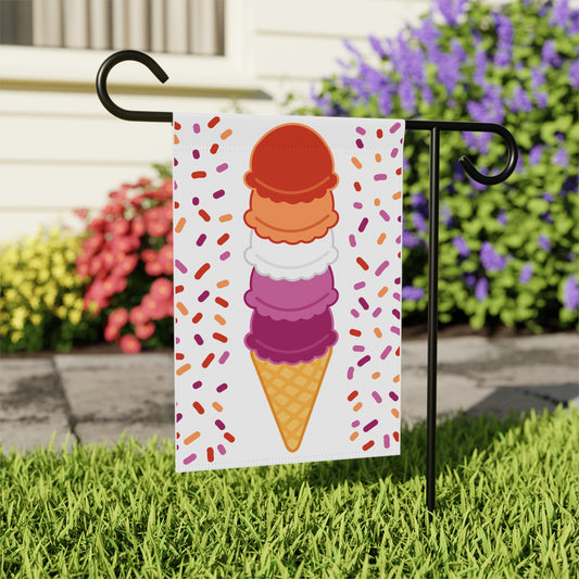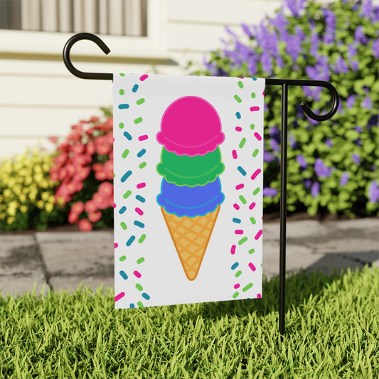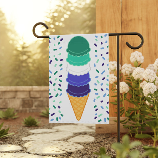 Celebrate your identity with a Scoopful of Pride! These charming garden flags feature a vibrant ice cream cone layered with scoops in the colors of your favorite pride flags—because every layer is filled with love, pride, and sweetness.